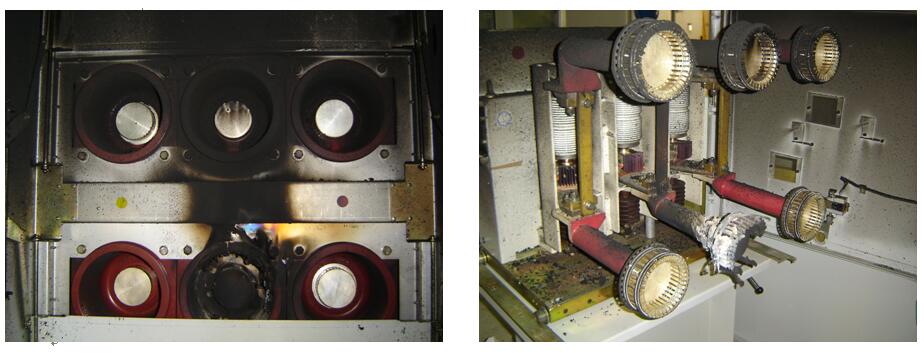 在用電緊張、負荷增長迅速的情況下,10kV~35kV開關柜往往由于制造或使用上的原因,造成觸頭的溫度異常上升。如果不及時發現,不及時維護,有時會造成嚴重的設備事故。由這種原因造成的惡性事故在國內時有發生(見圖1)。為了防止觸頭溫升異常造成的開關爆炸等惡性事故,國內一些廠家和運行單位經常會采用一些如變色片、紅外熱成像診斷來監測觸頭、母線等其它部位的溫升。但是,這些方法由于存在偏差大、不可遠傳或無法直接觀測發熱點等缺陷,不能有效地作為一種預防措施來推廣。