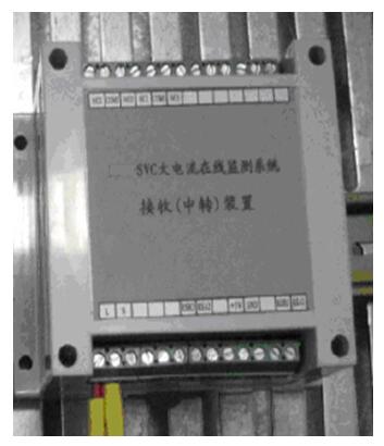 裝置同觸頭測溫裝置頻段配對后,通過數字解調將溫度信號讀取。然后通過增大發射功率將溫度信號調制到無線載波上傳輸到更遠的集中接收裝置,該裝置有兩級溫度超溫報警輸出。