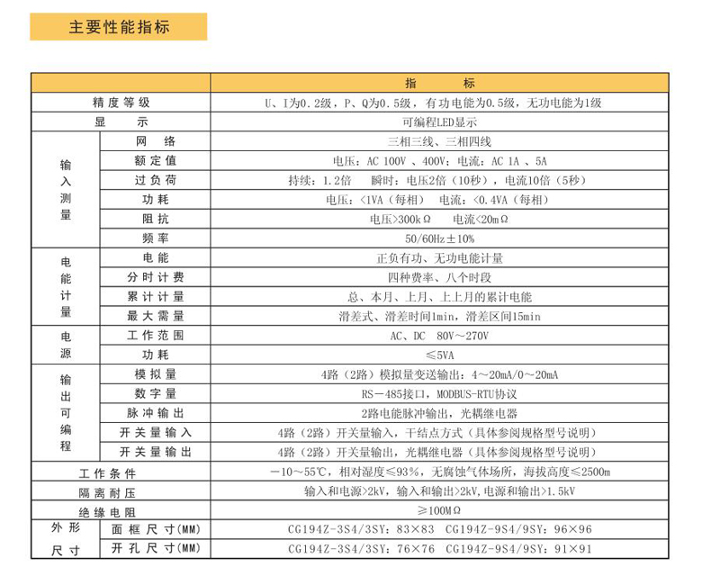 CG194E系列多功能電力儀表是針對電力系統、工礦企業、公共設施、 智能大廈等的電力智能監控和電能計量等需求而設計,能夠高精度測量三相電網中的三相電壓、三相電流、有功功率、無功功率、視在功率、頻率、功率因數、四象限電能,并具有數字通訊、電能脈沖輸出功能。CG194E系列多功能電力儀表可以直接取代常規測量指示儀表、電能計量表以及相關的輔助單元。作為一種先進的智能化、數字化的電網前端采集元件,該儀表可以應用于各種控制系統,能源管理系統,變電站自動化,配電網自動化,小區電力監控,工業自動化,智能建筑,智能配電盤,開關柜中,具有安裝方便,接線簡單,維護方便,工程量小,現場可編程輸入參數的特點。