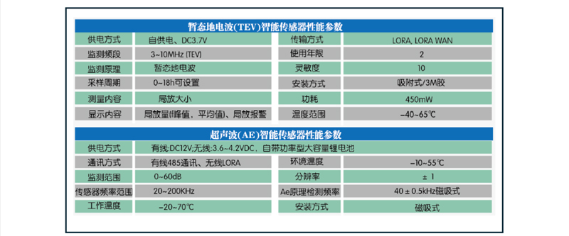 暫態(tài)地電波(TEV)智能傳感器/超聲波(AE)智能傳感器性能參數: