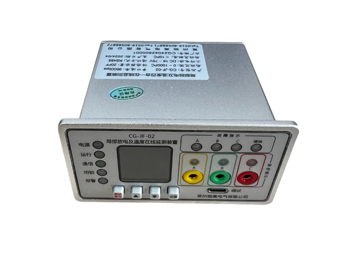 CG-JF-02局部放電及溫度監(jiān)測裝置是安裝在配電網(wǎng)絡(luò)系統(tǒng)中的環(huán)網(wǎng)開關(guān)柜、電纜分支箱、箱變等一次開關(guān)設(shè)備上,用于在線監(jiān)測局部放電、指示相應(yīng)電纜區(qū)段的短路和接地故障以及實時溫度的一種在線監(jiān)測裝置。脈沖電流法是當前普遍認可且廣泛使用的一種局部放電量測試方法,其結(jié)果是以pc為單位的視在放電量,屬于定量性質(zhì)的測量,能客觀反映電氣設(shè)備的絕緣狀態(tài)。在各種開關(guān)柜中,10kV及以上電壓等級環(huán)網(wǎng)柜由于安裝數(shù)量最大,故障次數(shù)也最多,造成的后果也很嚴重。因此,對10kV及以上電壓等級開關(guān)柜進行局部放電及升溫在線監(jiān)測,不但能夠了解設(shè)備的絕緣狀況,還能夠及時發(fā)現(xiàn)許多有關(guān)制造與安裝方面的問題,確定絕緣故障的原因及其嚴重程度。該裝置還集成了電纜溫度、故障指示等功能,集測量、分析、診斷為一體,面板使用 OLED 屏幕顯示界面,方便巡檢人員判斷開關(guān)柜的絕緣狀況,降低運維成本,及時處理存在的絕緣隱患,提高配電設(shè)備運行的可靠性。