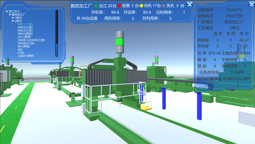 實現了設備網絡化:使數據的雙向傳輸,在線下達生產程序與設備狀態信息自動上傳到管理平臺,通過虛擬化設備模型,通過數字化的管理手段提高生產效率;